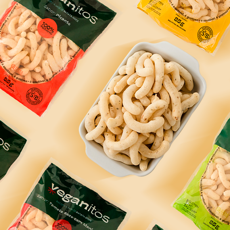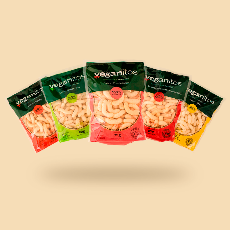 Experimente a diversidade de sabores com o nosso incrível Mix Veganitos! Este combo inclui uma seleção dos nossos sabores: Tradicional, Temperado, Grãos, Tomate seco com Manjericão e Picante. Com o Mix Veganitos, você terá a oportunidade de provar cada um desses deliciosos biscoitos veganos feitos à base de batata-doce.